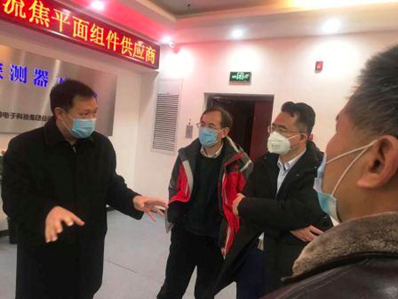 2020年2月28日,集团公司党组成员、副总经理黄兴东一行赴电科光电,指导公司疫情防控与复工复产工作情况。