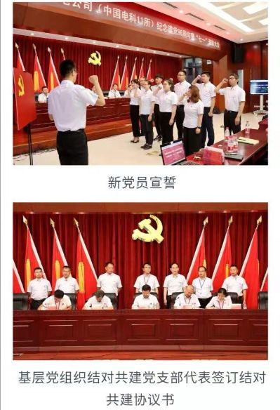 大会表彰了2018-2019年度党内先进,应明炯副总经理宣读了集团公司直属党委和11所党委“七一”表彰决定。公司和11所领导班子成员为2019年度所级党员攻关团队授旗,新入党党员对党旗宣誓,基层党组织结对共建代表签订结对共建协议书。