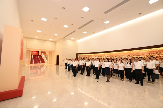 7月6日,中国电科党组书记、董事长陈肇雄带领党组成员、总部各部门负责同志、在京二级成员单位党委班子成员、一线先进典型和党员干部代表,前往中国共产党历史展览馆,集体参观“‘不忘初心、牢记使命’中国共产党历史展览”,并重温入党誓词,从百年党史中汲取强国强军的磅礴力量。